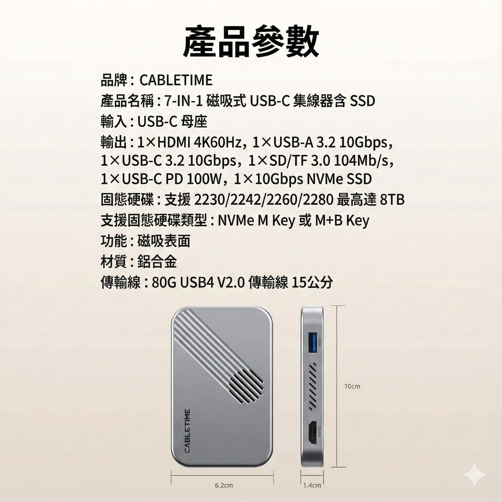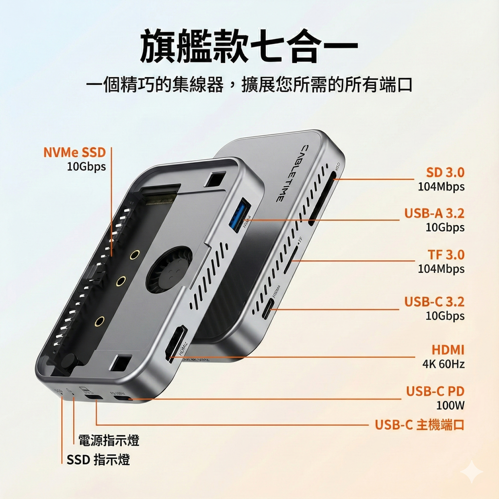 [CABLETIME] 7合1 多功能外接磁吸HUB,CREATOR創意生活